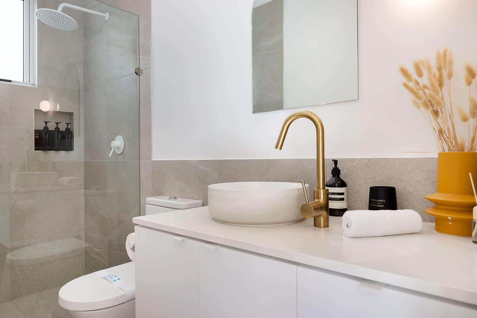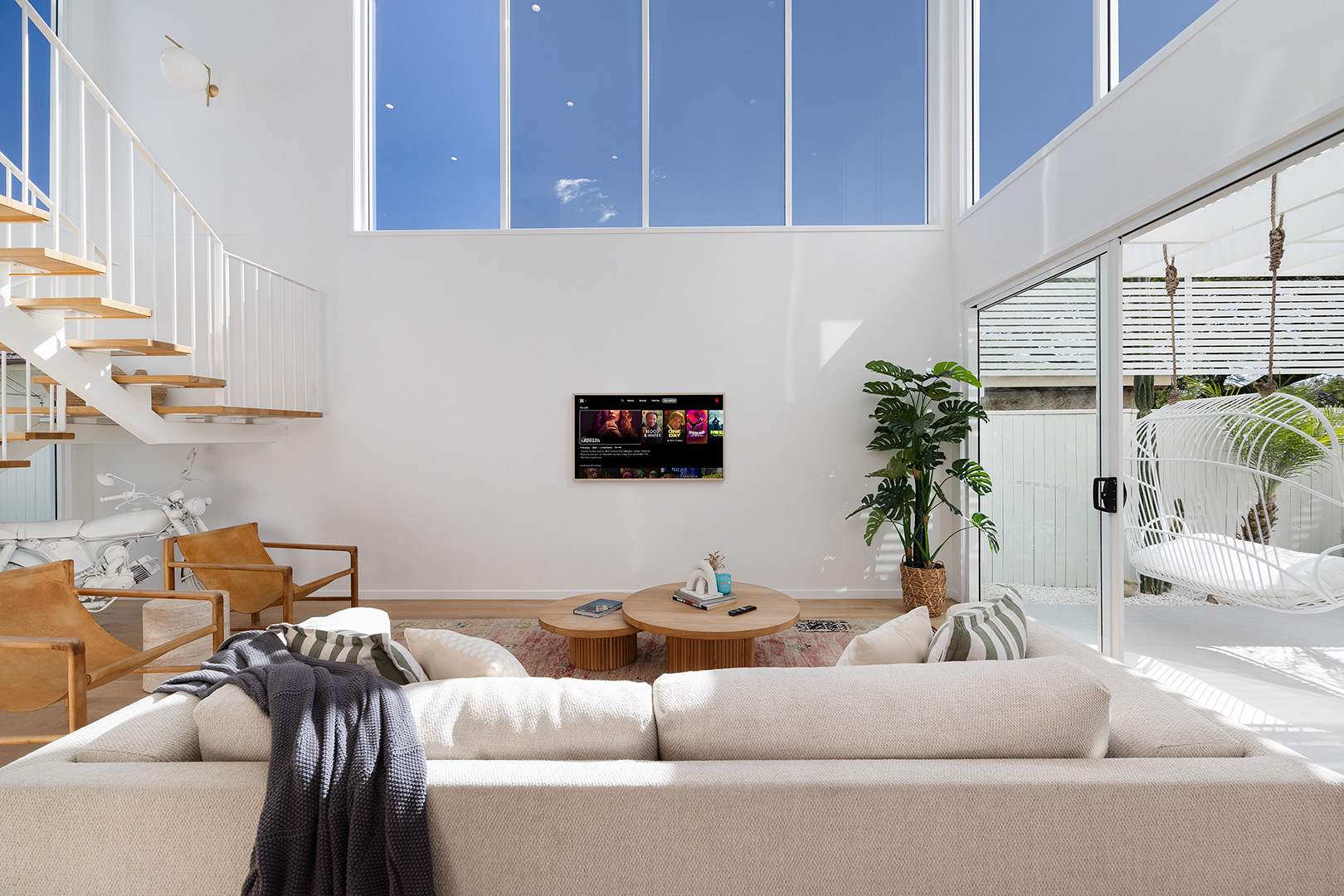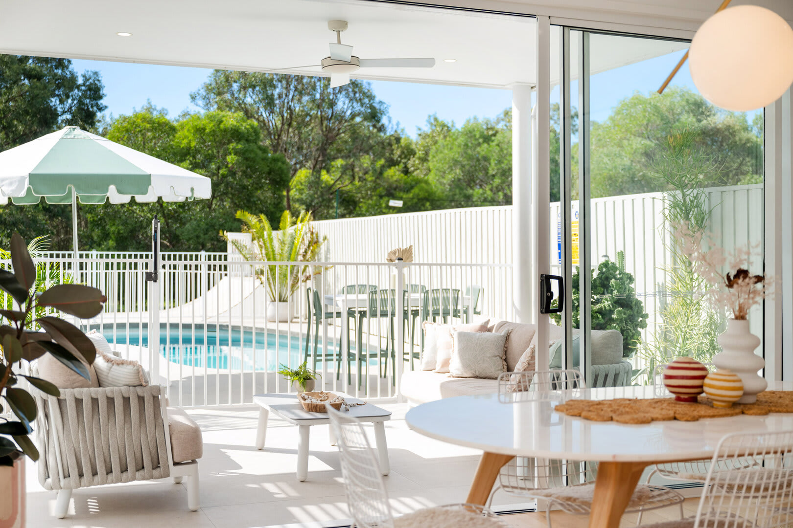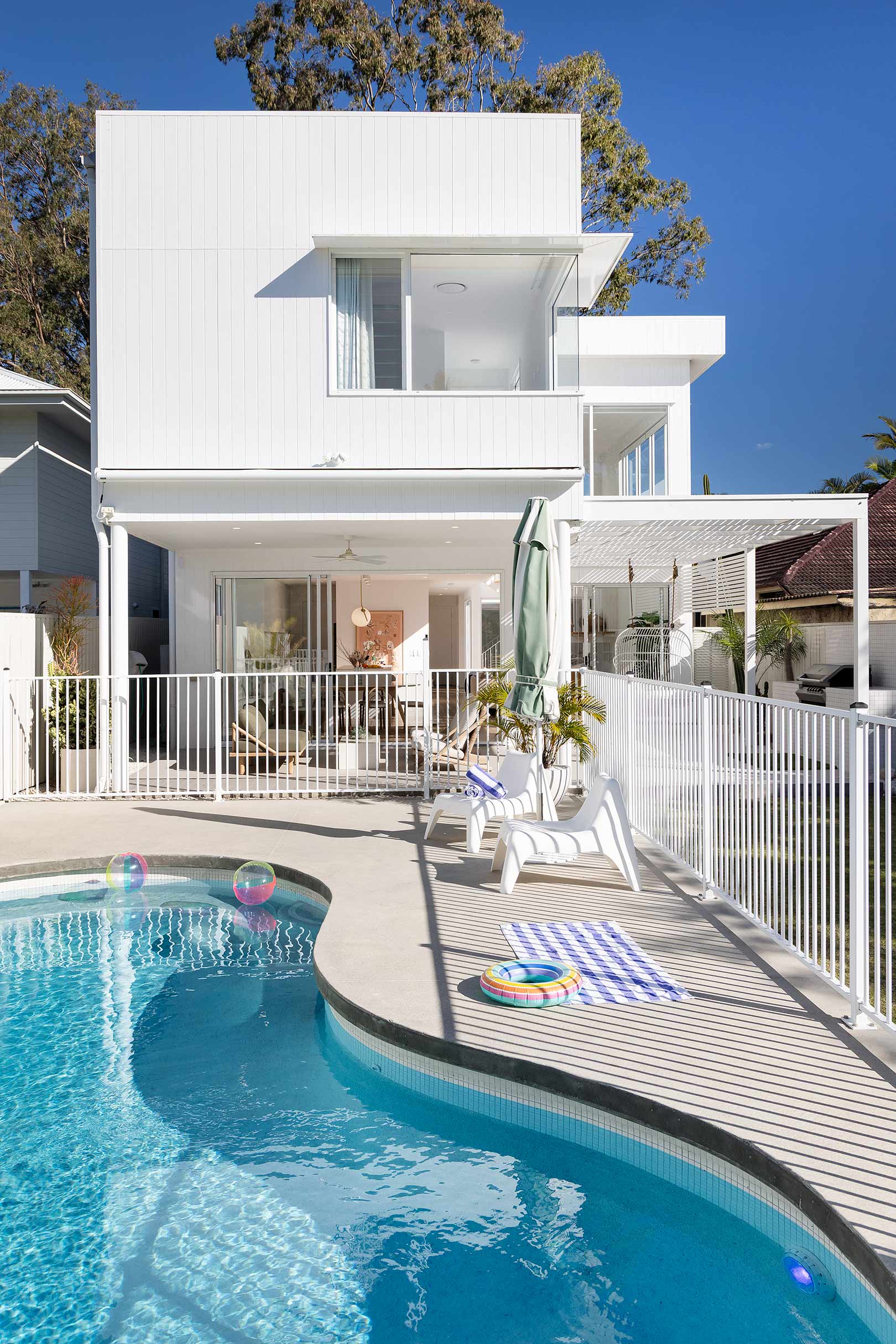 This airy 5-bed home is perfect for families with a love of natural light and modern design features. A truly stunning designer home, complete with a back yard that’s perfect for an active family: it offers a pool, a skateboard ramp, a covered entertainment area, and a small lawn. It’s the ultimate home for families looking for an extended stay, or an interim home when relocating to Brisbane.
