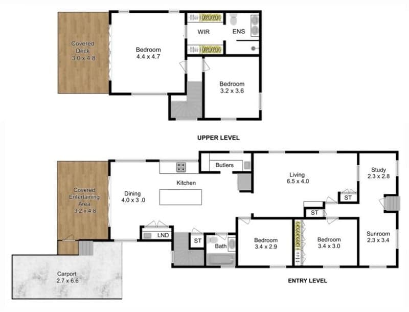• Polished hardwood floors throughout and carpeted bedrooms upstairs (2)
