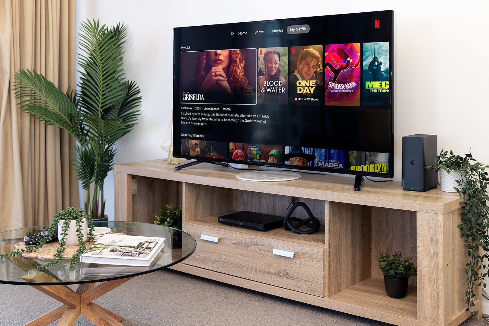 – Wireless NBN internet and smart TV with standard TV channels and connection to Netflix, Youtube and other online streaming services