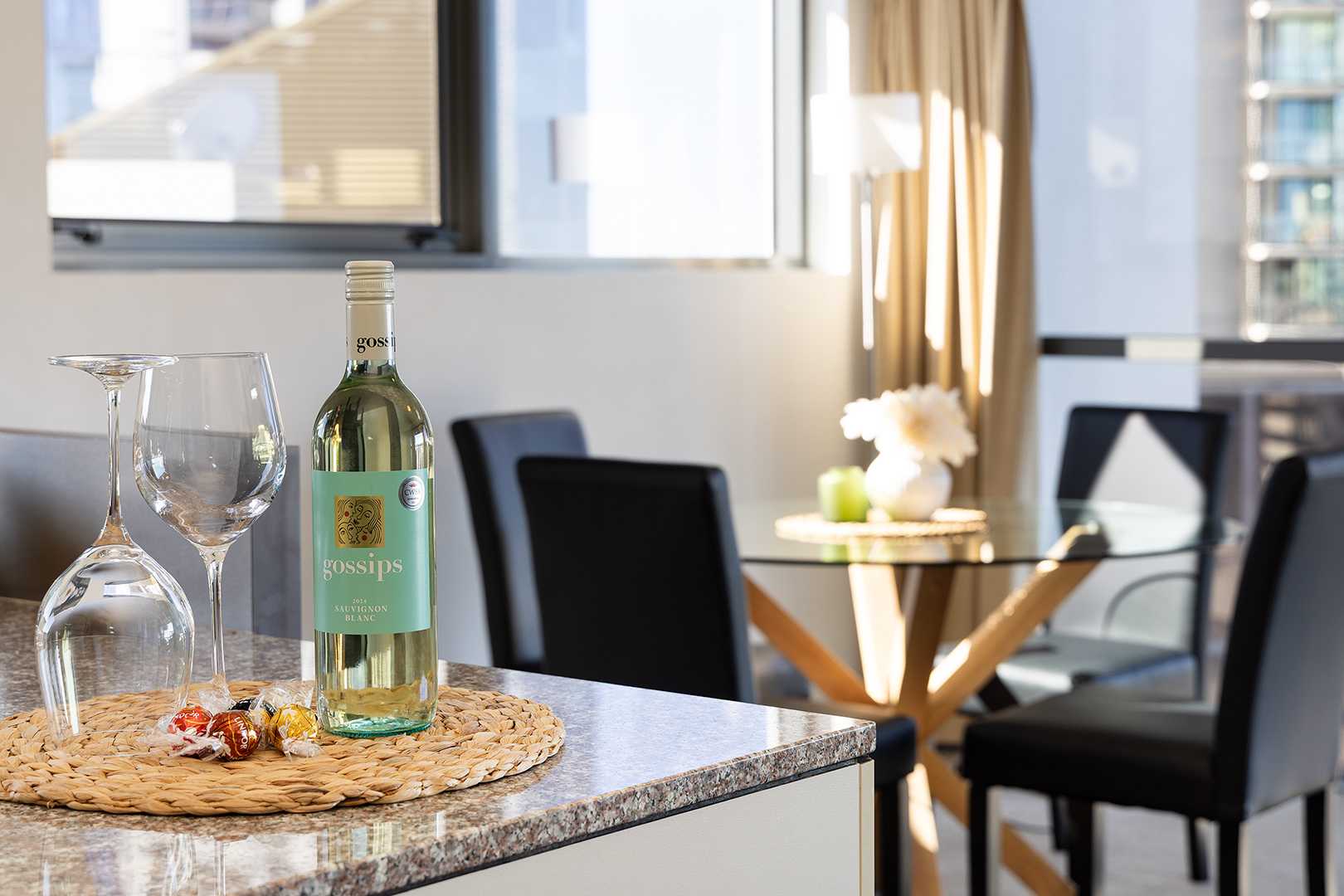 – Free bottle of wine, chocolate and other amenities upon arrival