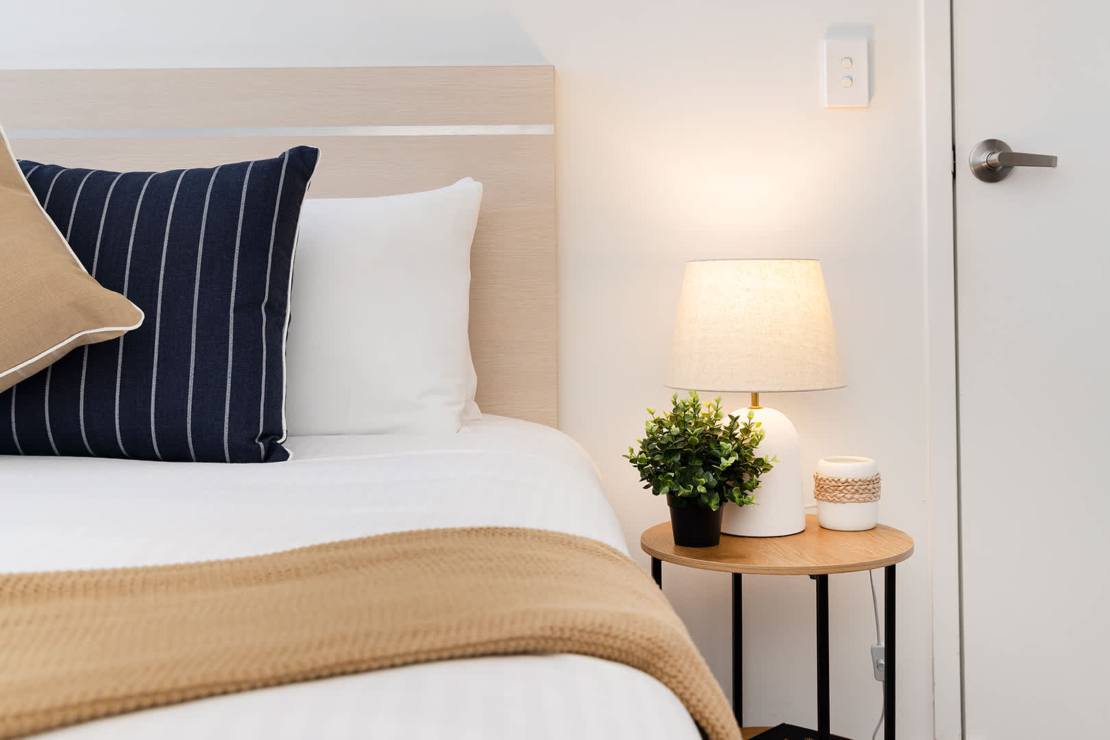 – Second bedroom with 2 king single beds, wardrobe, study desk and AC