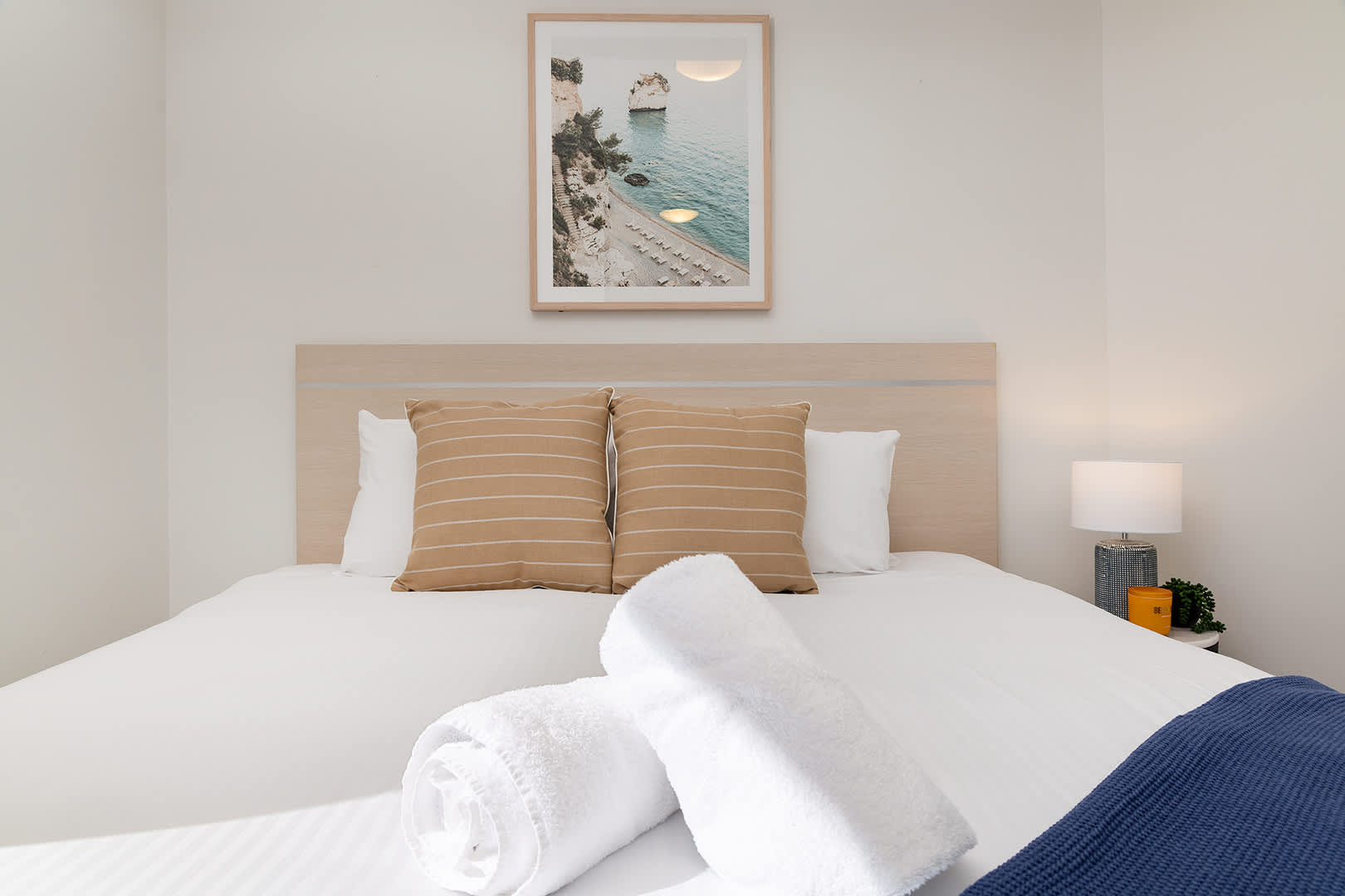 Relax in this modern 2 bedroom apartment with amazing views, fully equipped kitchen, laundry and a combined living and dining area.